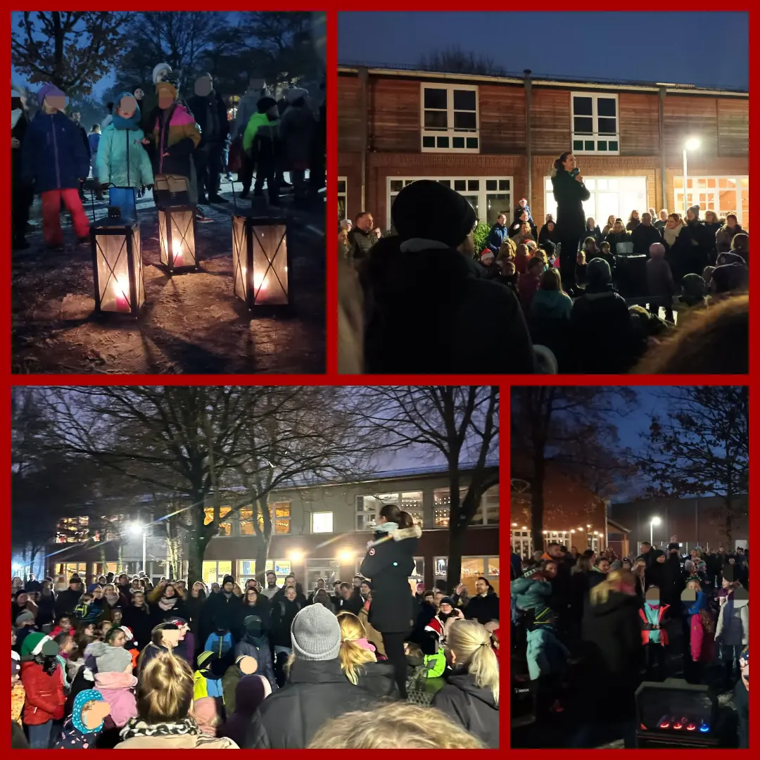 Hier ist zu sehen, wie Schulkinder gemeinsam Weihnachtslieder singen.