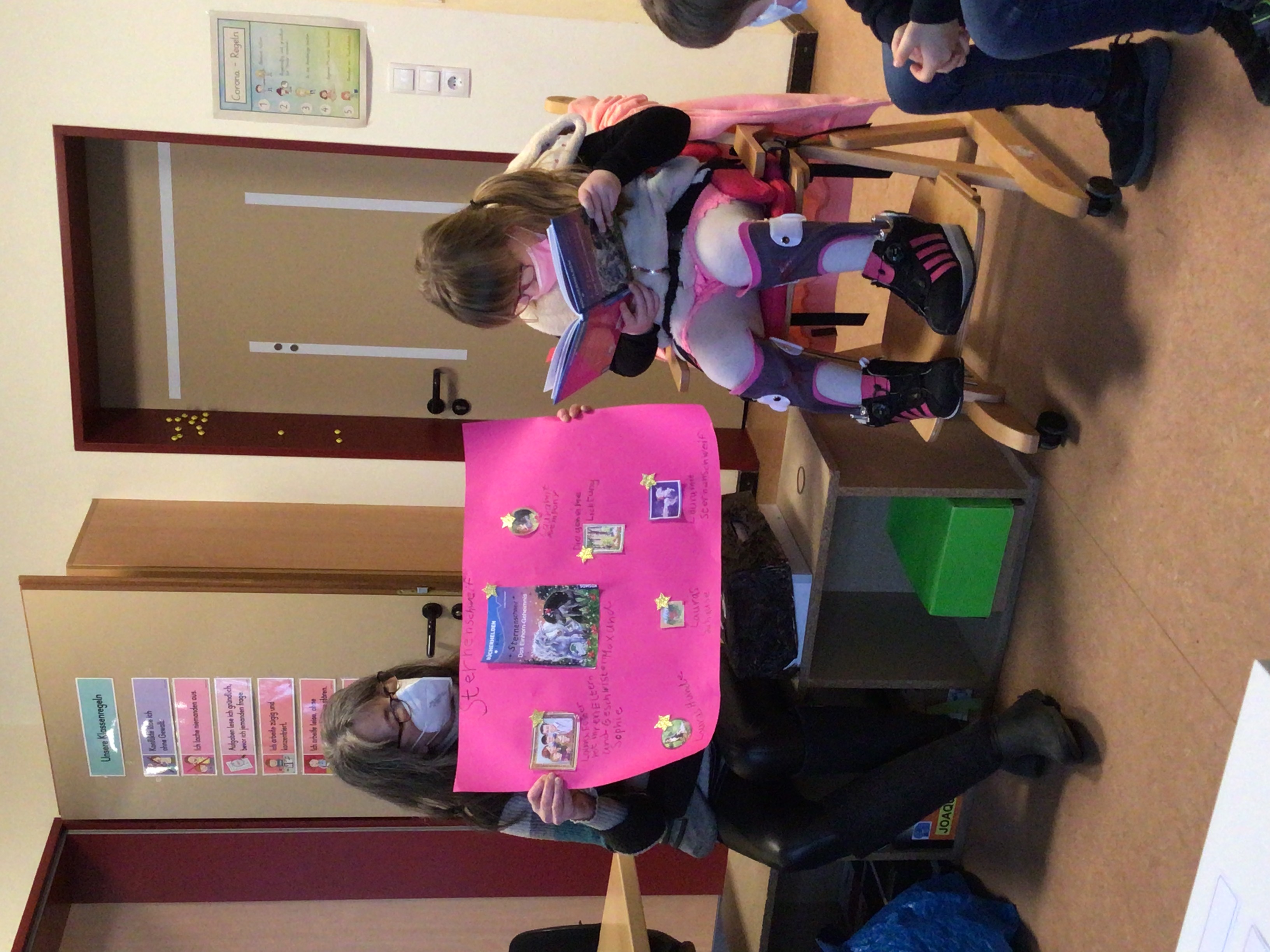 Hier ist ein Mädchen mit ihrer Assistentin zu sehen.