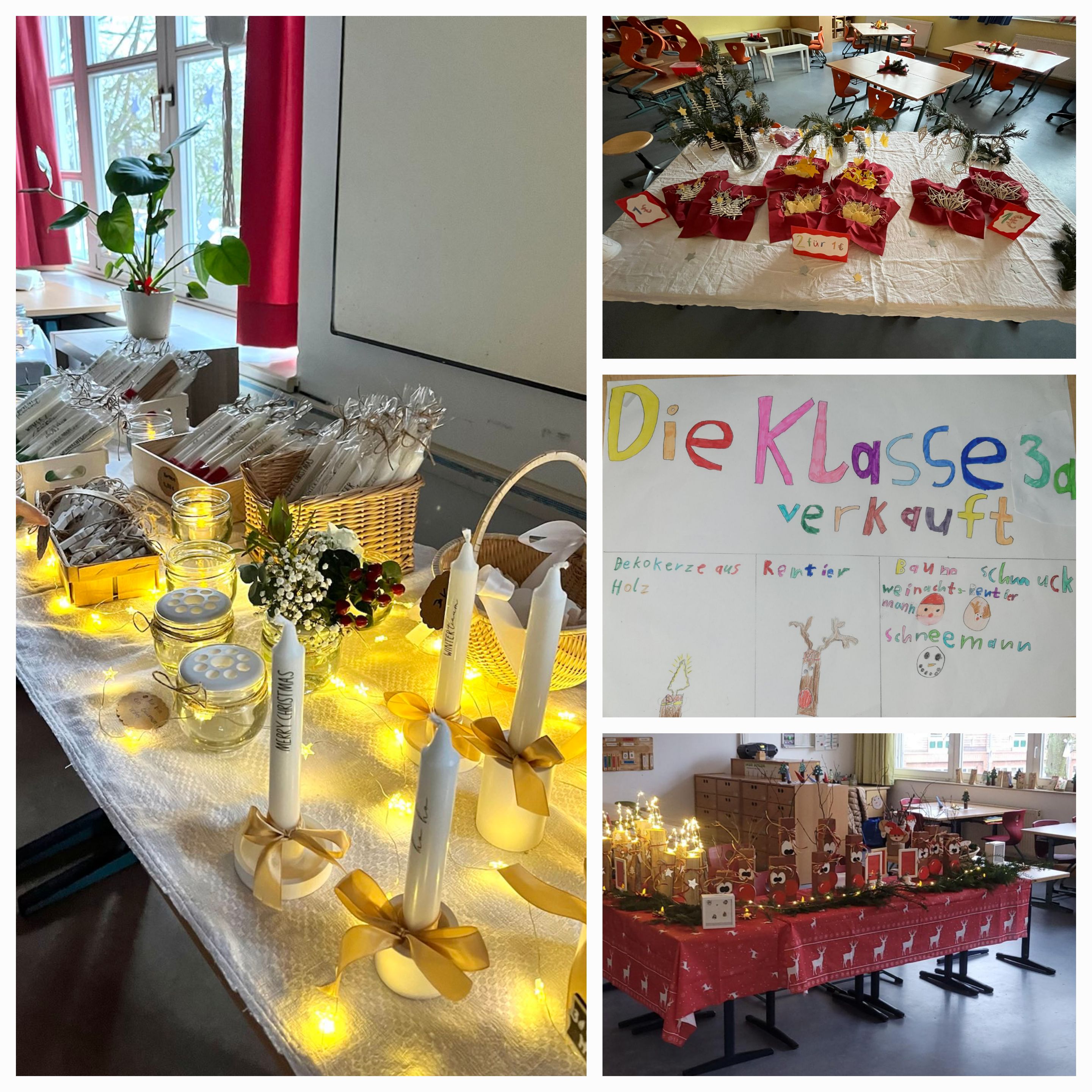 Hier ist eine Fotocollage zu sehen, auf der Stände des Weihnachtsbasars zu sehen sind.
